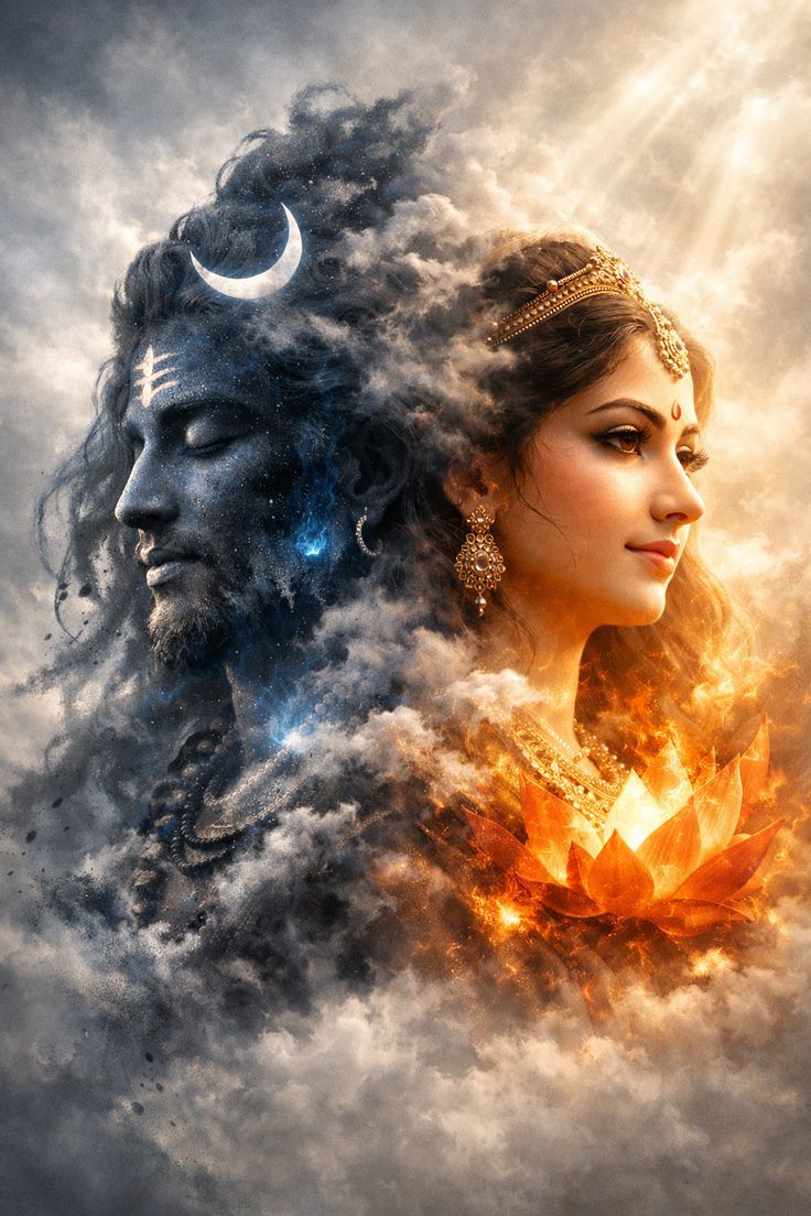 Spoken word poetry floats through atmospheric textures with dramatic pauses, entwined in new funk acid jazz and harpsichord anti-folk riffs, Deep wave synths, ambient Vedic and world music timbres layer with Tibetan shamanic percussion, cinematic orchestra swells, and heartbeat pulses, Soft, resonant male and pure female vocals blend in crystal harmonies, drifting over a lush, space-cinematic soundscape—no bridges, only evolving immersive sections