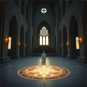 Epic sacred orchestral metal in German, male lead vocal with deep male choir and subtle female choir, slow to mid-tempo, Cathedral atmosphere, organ, strings, restrained drums, solemn and reverent mood, Theme: holy oath, paladin order, light, mercy, discipline, inner doubt beneath faith, Style similar to: Gregorian chant meets symphonic metal, cinematic fantasy soundtrack, Emotional but controlled, high dynamic build in chorus, reverent ending