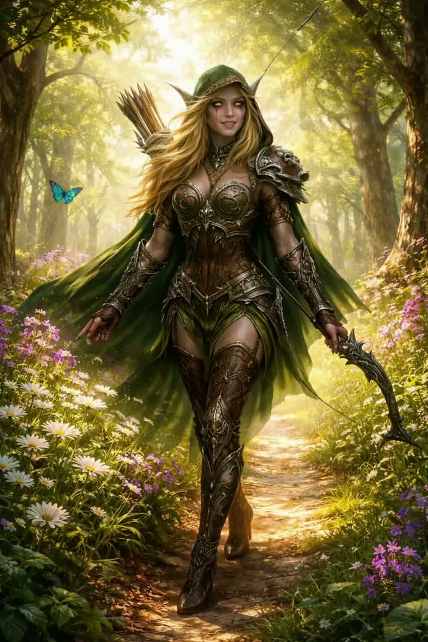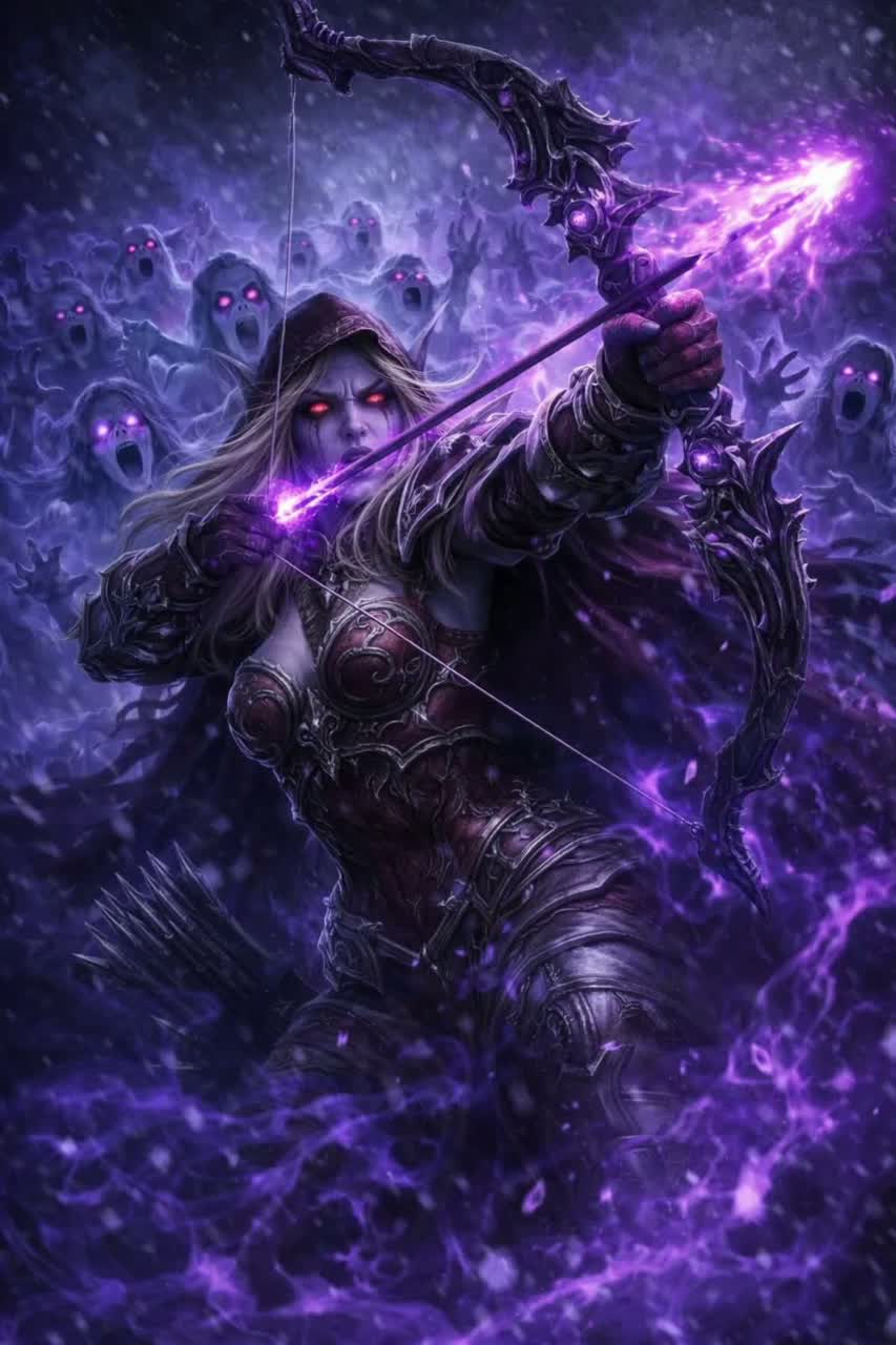Theme: Sylvanas Windrunner before her fall, Ranger-General of Quel’Thalas, pride, duty, quiet sorrow, standing guard before the coming darkness