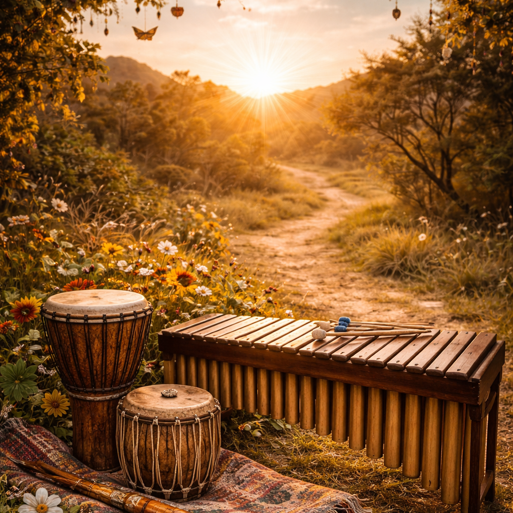 - secondary: drums (tight, dry), subtle synth pads, world percussion accents