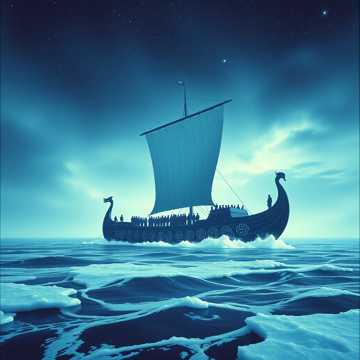 Huge cinematic Viking-longship energy; deep male vocals upfront with roaring call-and-response choir and piercing female elven harmonies floating above, Taiko-style drums locked to an oar-stroke pulse, low war horns, and icy string drones, Verses stay sparse and percussive; chorus explodes with layered gang shouts and elegiac high-register lines, Final pass adds distant female lament and tom-driven crescendo, ending on a single held vocal note over fading waves, deep, strong, male vocals