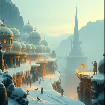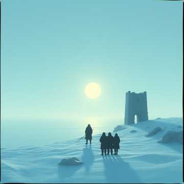 Melancholic Nordic‑fantasy ballad set in the same world as the Skyspire legend, Pilgrims wander through the frozen North, facing storms, despair and haunting magical creatures, Deep male vocals with soft female harmonies, icy strings, gentle drums, distant elven choir, Themes of faith, community and fragile hope in a world shaped by ancient pride, betrayal and the fall of the Skyspire