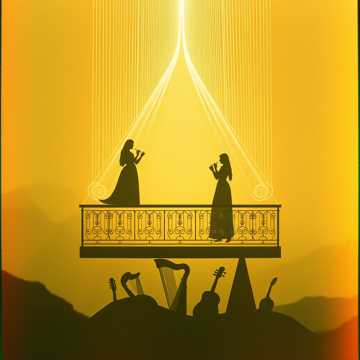 Shimmering fantasy ballad with Celtic-tinged harp and lute, warm baritone lead interwoven with floating soprano countermelodies, Verses stay delicate with pizzicato strings and soft choral pads; chorus blooms into wide stereo choirs, soaring violin lines, and a subtle timpani roll hinting at looming tragedy, Gentle dynamic swells support the duet’s call-and-response, ending on an unresolved, haunting cadence, magical, bright, light