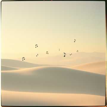 Instrumental, Fusion of gagaku treated as ambient/drone with IDM micro-editing, Tempo ~88 BPM, 4/4, slow pulse, Drone bed = sho-like sustained chord clusters (aitake colors, open fifths, E-centered ryo/ritsu hue), evolving by subtle voice-leading, no functional cadences, Lead = hichiriki-like breathy reed, no vibrato, slight portamento; ryuteki-like flute adds airy ornaments, Texture = heterophony: parts move in parallel but not in unison; phrases start slightly off the bar, Percussion = shoko/taiko/kakko-style cues every 4 bars; IDM layer uses soft clicks, granular ticks, glitch sprites, ghost notes; polymeter 5:4 vs 4:4; micro-delays and probability-based triggers, Structure: Netori-like intro (pure drone + sparse ornaments) → Main A-B-A’ (long breath-phrases, restrained swells) → Zanraku-like coda (thin to drone + plucked strings), include brief sanben-style repeats without speeding up, Avoid heavy kick/snares; emphasize negative space, temple-like reverb, long decays, tape-hiss war