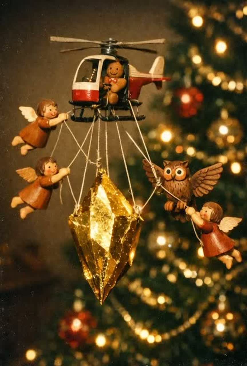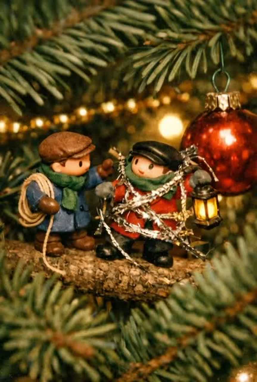 christmas movie soundtrack, Spoken Word Narration, Warm and Elderly tone, comedic mishap, playful xylophone, warm & vintage sound, soft midrange orchestral texture, light, airy sound for melody lines, crashing or shimmering accents