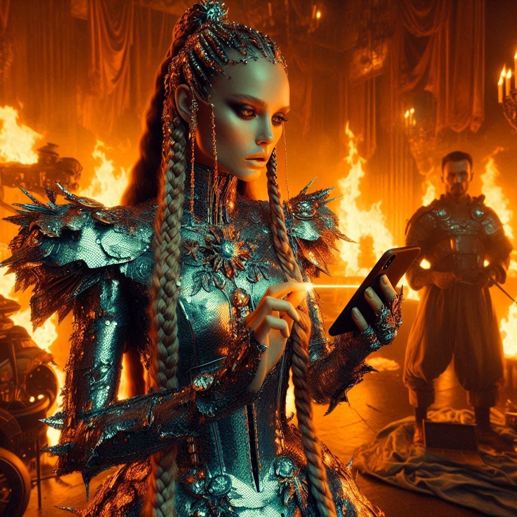 Tempo 98 BPM, mid-slow push-pull swing; guitars lead with distorted riffs, sliding bends, feedback swells as emotional core; male/female gritty vocals raw yet melodic, falsetto peaks echo guitar phrasing; bass low, growl, slides minor intervals, syncing with riffs; drums punchy, snares snap, toms heartbeat-like, hi-hats stutter with riffs, cymbals swell; pads foggy, cinematic, swell behind guitar layers; FX: tape hiss, granular stabs, reversed snippets, ambient fairy chimes, soft pixel-like glints like game OST; background faint harp glimmers, melodic bells flutter in space, adding magical tension; flow: hypnotic loops, verses paragraph-like with guitar motifs, chorus thesis reinforced by riff repetition, bridge as emotional climax with soloed riffs, outro resolution on guitar-led chords; full-band dynamic cohesion, emotional tension rises with guitar heart, immersive fantasy-cinematic vibe, loopable motifs echo like enchanted landscapes