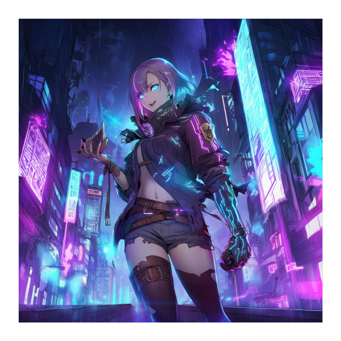 Fast-paced cyberpunk electronic techno (around 140 BPM), immediate synth arpeggio intro with sharp digital textures, futuristic electric sound with crystal-clear synth leads and pulsing bass, Strong digital melodic elements (arpeggios, stabs, layered leads) to emphasize a cybernetic futuristic feel, less dance-club and more cyberpunk cinematic edge, Female vocal with powerful emotional intensity, immediate vocal hook from the intro, driving percussion and relentless high-energy beats, Extended double-length choruses with added vocal lines for impact and memorability, Whispered lines [Whispers] layered behind final choruses and bridge for depth, Glitch effects only in breaks and bridge, with sudden digital cuts, short impactful intro, extended explosive choruses, constant high speed and futuristic clarity, Studio quality, cinematic mix, mastered for streaming, high fidelity, deep low end, crystal clear high frequencies, minor chord, impressive melody, clearly lead voice