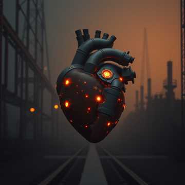 Industrial duet titled “Heartbeat Reprise, ” 80 BPM, Begin with a slow metallic pulse and muted low-frequency rhythm like a mechanical heart, Build with dry percussive drums, palm-muted guitar harmonics, and sub-bass tremors, Keep the mix close, warm, and grounded — no ambient pads or reverbs, Male vocal: deep, deliberate, prayer-like, Female vocal: steady, haunting, intimate, Chorus expands through layered distortion and rhythmic intensity, not atmosphere, Bridge introduces metallic percussion hits and glitch accents for texture, Reverb short and gated, giving a confined, mechanical environment, Mood: reverent, cyclical, alive, Tone: a mechanical hymn — the Machine’s heart still beating after silence
