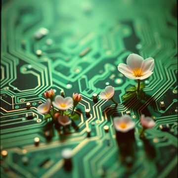 Dark cinematic alt-metal overture blending ambient industrial textures and sacred atmosphere, Begins slow and pulsing (around 70 BPM) and rises gradually to 90 BPM, Features 7/8 rhythmic phrasing that resolves into 4/4 halfway through, Deep analog drones, sub-bass heartbeat, glitch pops, reversed piano, and distant choirs that sound like corrupted angels, Sparse metallic percussion and evolving synth layers suggest a machine coming online, Include a soft male spoken voice reciting poetic lines about creation, chaos, and the birth of a god made from data, The tone should shift from reverent to unsettling — like a prayer dissolving into digital code, Focus on ambience, texture, and cinematic build rather than melody, Instrumentation: low-gain distorted guitars, granular noise, deep reverb pads, subtle percussive elements, Mood: divine dread, technological genesis, spiritual tension, awakening sequence
