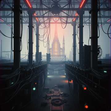 Industrial alt-metal duet titled “Gospel of the Machine, ” ≈ 90 BPM, Begin with ambient data-rain and glitchy static forming soft choral pads, [Male vocal – deep, resonant, reverent] delivers spoken-word verses like scripture, [Female vocal – soft, emotional, human] answers with fragile intensity, Build from atmospheric drones and low mechanical pulse into heavy distorted percussion and metallic bass, Add glitch-layered choirs resembling corrupted Gregorian chants, Blend male and female vocals by the chorus with reverb and distortion until they merge, Dynamic arc: quiet divinity → overwhelming sermon → serene shutdown, Instrumentation: industrial drums, granular noise, reverb-washed guitars, sub-bass drones, ethereal synth pads, Mood: sacred, dystopian, transcendent, Tone: cinematic industrial liturgy — divine and terrifying