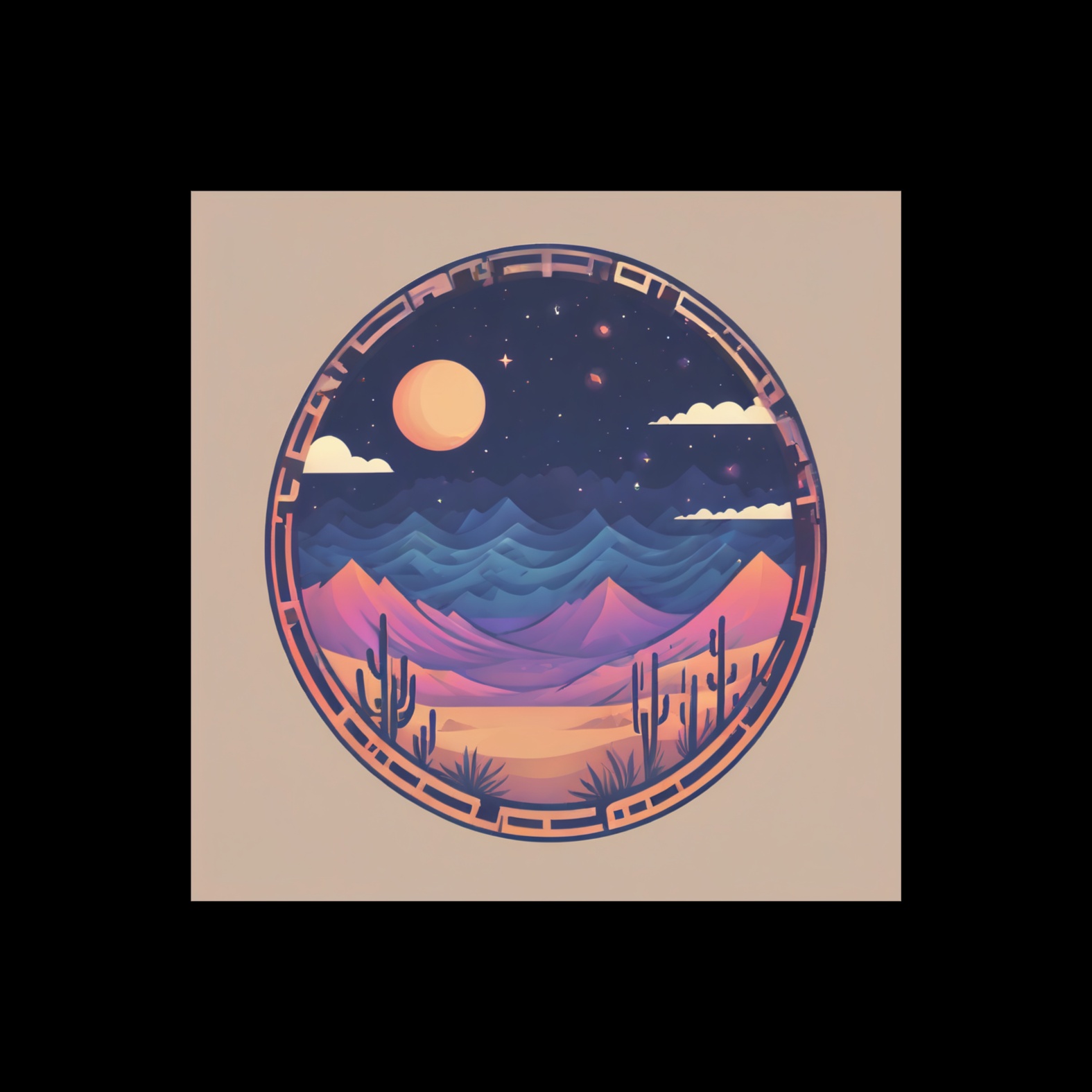 Desert ethno-trance, Handpan spirals, frame-drum swarms, reed mantras, Indigo dunes shimmer with sigil mirages, sonic heat ripples then evaporates, Atypical