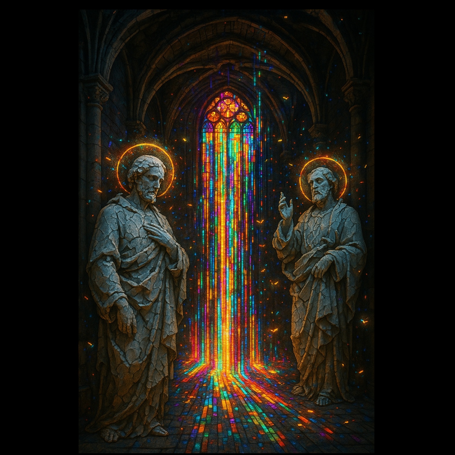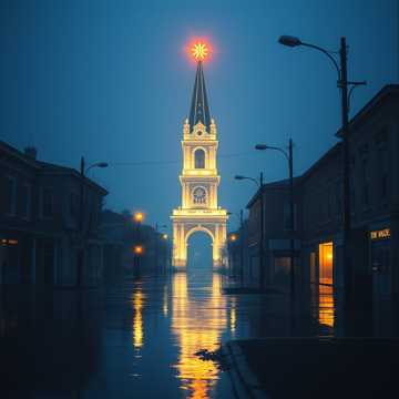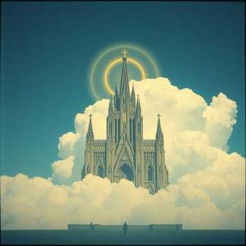 Solarnoir gospel & Neo-Sacred Soulwave, Battered vinyl organs wail beneath haloed delay trails, while downpitched choirs loop through heat-warped transistor sermons, The rhythm, stitched from foot-cracked asphalt loops and thunderclap claps, surges forward as if summoned by storm-preachers, A cracked bell tower broadcasts modulated hymns across a flooded neon borough, the water reflecting shattered haloes and rusted signage flickering with divine interference, Each downbeat releases a procession of spectral brass and tremolo wails, processed through analog grit and feedback sanctification, As the groove decomposes into holy distortion, ghost-hands play forgotten motifs into oil-slick dusk, where cyber-saints twitch in polyrhythmic convulsions