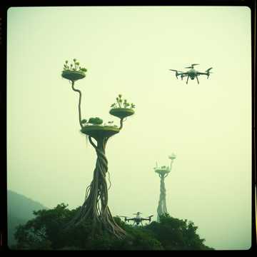 Jadepunk kinetic ritual; wind-hollowed flutes exhale through oxidized pressure vents, while koto strings lash like taut steel cables across levitating bridges, Aerial gardens spiral above monolithic jade towers, their roots trailing data spores into the thermosphere, Ceremonial drones etch shifting calligraphy into molten skyfolds, each curve modulated by tremor-sensitive sensors embedded in living stone, Rhythms emerge from deliberate imbalance—ceramic chimes scatter in elliptical delay fields, syncopated by footfall triggers on orbital walkways, Between pulses, engineered silence inhales like breath through magnetic reeds, Harmonic inertia builds, resets, mutates—each cycle a biomechanical mandala collapsing into fluid stasis
