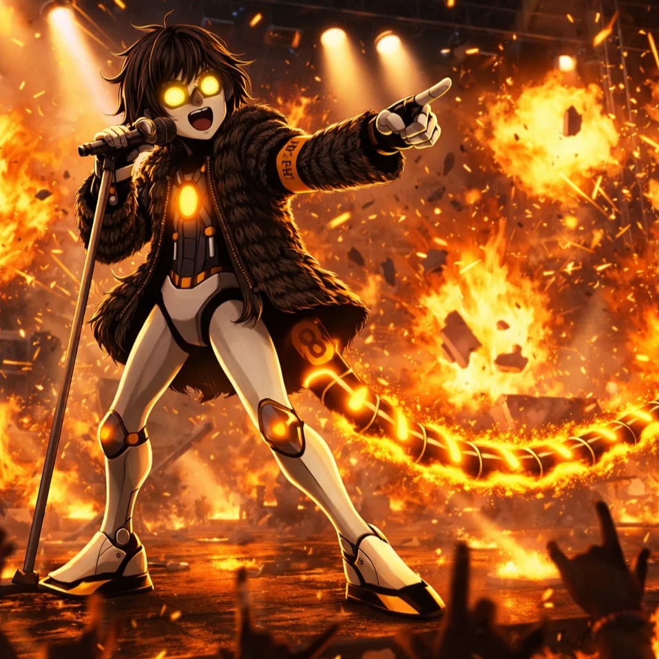 Glitchcore pop‑rock hybrid, fast‑paced around 125 BPM like similar soundtrack sound, punchy distorted guitars, crunchy punch drums, digital synths with sharp stabs, energetic electronic bass, glitchy vocal chops, rhythmic claps and snares, bright lead synth melodies, layered electronic atmospheres, bass drops, driving arpeggios, light ambient pads for emotion, warped glitch FX, edgy but melodic vocal harmonies, tension builds with digital noise, upbeat aggression with attitude, ‑Emo Young Female Vocals