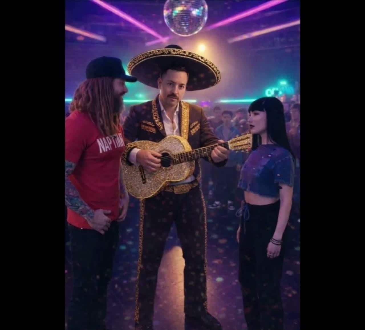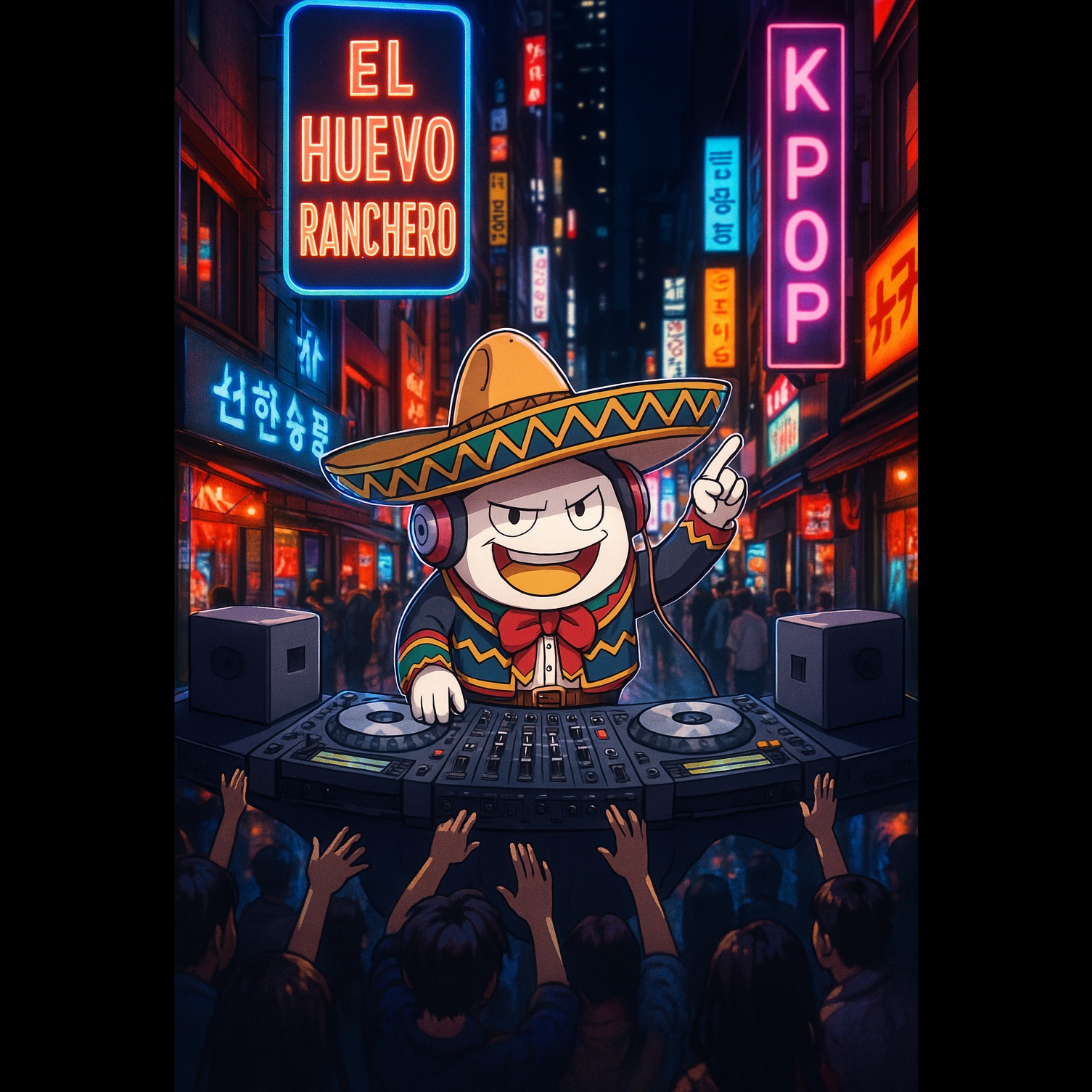 Pulsing dark synths and crunchy midtempo basslines drive a cyberpunk EDM sound, Glitchy, snapped percussion and filtering effects build tension through the verses, Drops hit with distorted metallic leads and robotic stabs, Sparse, futuristic breakdowns feature Mariachi guitar and accordion, with trumpet solos cutting through the electronic mix, blending tradition into the futuristic groove