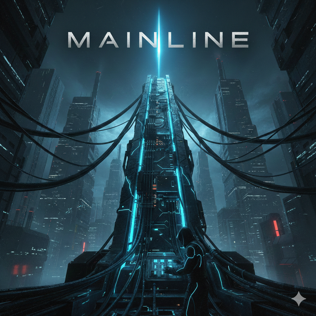 Modern Dark Techno-EDM, 128 BPM, heavy industrial sidechain, gritty analog bassline, minimalist hypnotic vocal, "Mainline" vocal chop, cinematic tension, aggressive club atmosphere