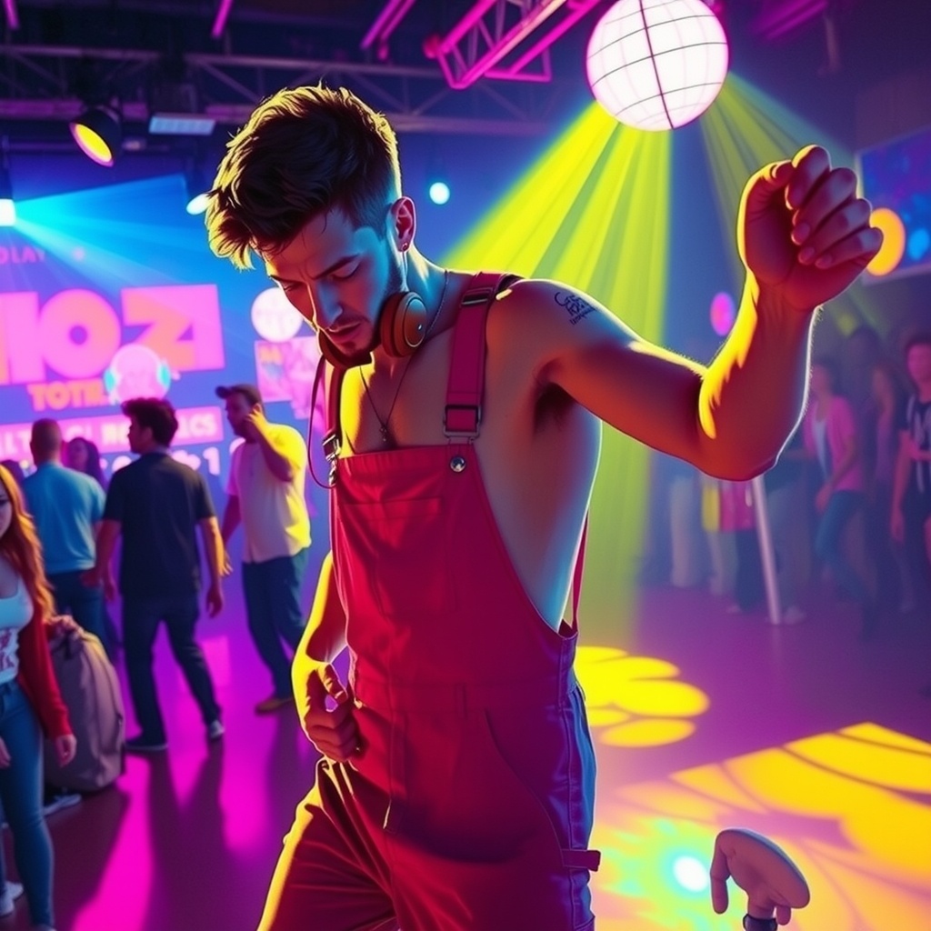 Style: Future nostalgia, Nu-Disco, Trap-Pop, 128 BPM, Heavy 808 bass, Crisp hi-hats, male vocals (or high-pitched male synth-pop vocals), Galactic synths, Pulsing dance rhythm, Cinematic atmosphere, Groovy bassline