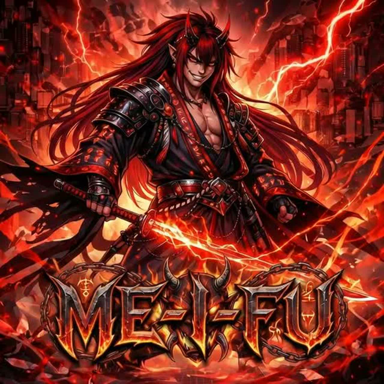Chaotic cyberpunk ritual music, Japanese traditional elements (gagaku, noh chanting, shinobue, distorted shamisen), extreme genre fusion, unpredictable structure, fast tempo with irregular rhythm changes, polyrhythmic drums, industrial noise and glitch textures, atonal and dissonant harmony, minor key shifting into unstable modes, brutal orchestral hits, dark synthwave layered with harsh digital distortion, tribal ritual percussion, warped koto and shamisen, jungle