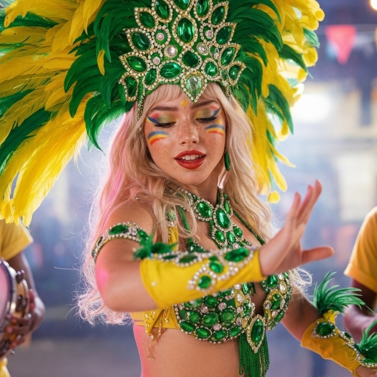 Opening with layered pandeiro, surdo, and cuรญca interlocking over airy synth textures, the track quickly accelerates into fast-paced Drum & Bass breakbeats, Syncopated samba rhythms underscore the verses, while Portuguese vocals float above, adding a ritualistic, carnival-driven intensity throughout