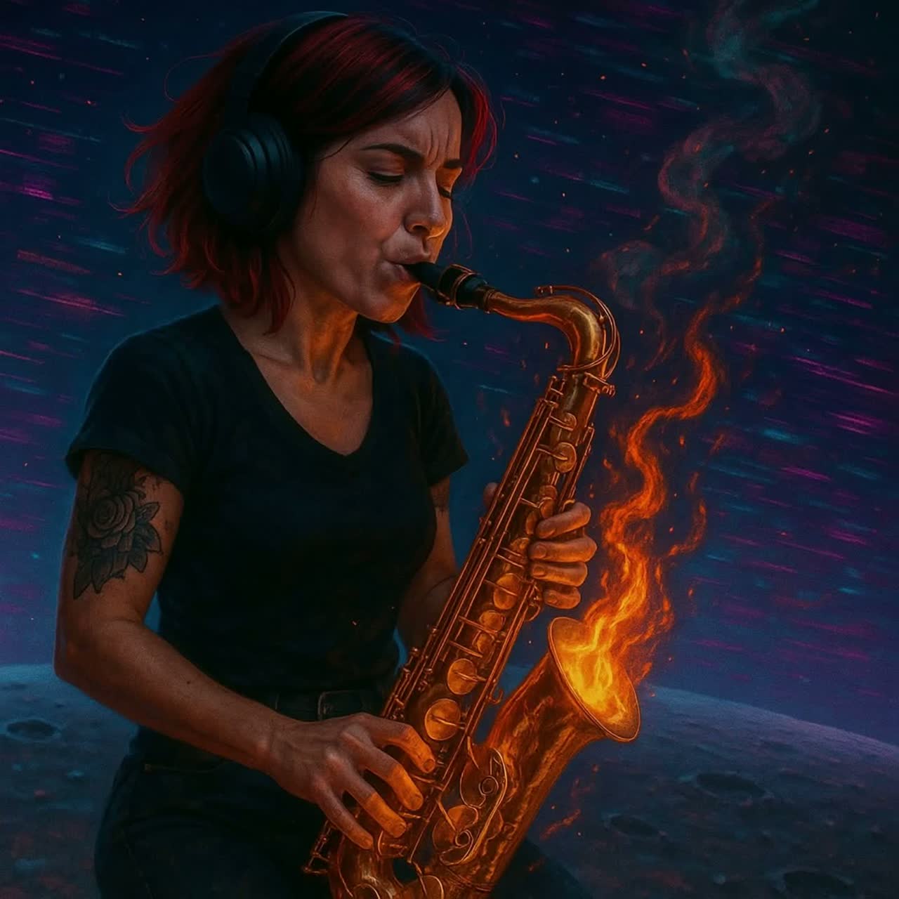 Burning saxophone solo emotional raw and wild