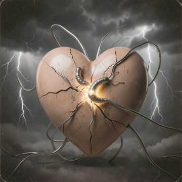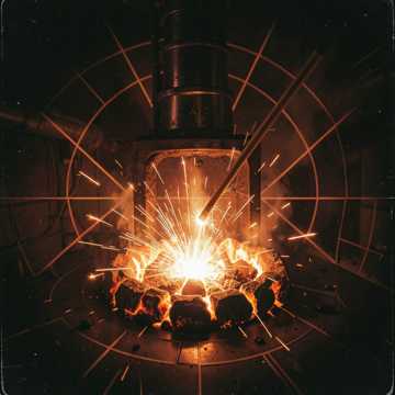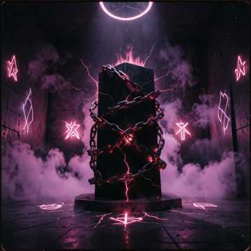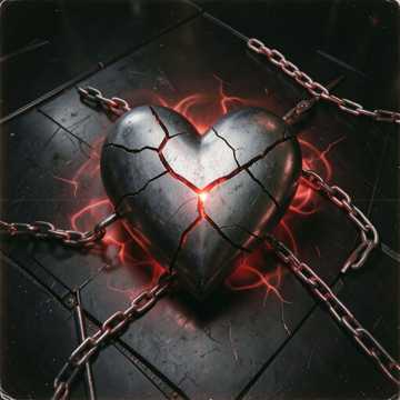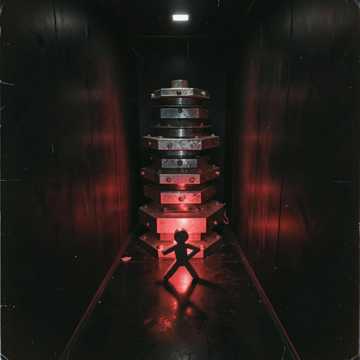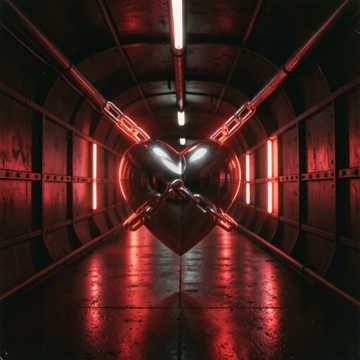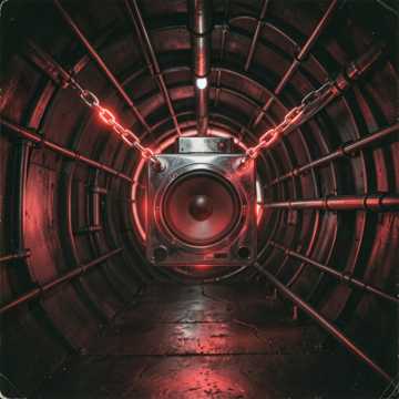 Chaotic, unhinged Industrial EBM / harsh synthpop hybrid at 142 BPM, key C minor, Vocals: male very deep baritone, Groove: tight 4/4 kick with off-beat bass pushes, snappy clap, restless hat patterns, metallic clicks and short gated hits, Bass: distorted EBM bass + sub, pulsing with occasional octave jumps in refrains, Synths: cold minor chords, percussive stabs, and a hypnotic 3-note lead motif that returns like a “refrain, ” Arrangement is NOT verse/chorus standard: A-section (spoken-sung), B-section (hook refrain), C-section (tension loop), then a final payoff with layered stabs, Breakdown: stripped to kick + bass + breathy whispers, then slam back with stop-cuts and impacts, FX: noise swells, tape-choke, hard silences, reverse hits, metallic impacts, Mix: compact, loud, gritty saturation, crisp transients, sidechained low-end