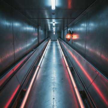 High-speed EBM / industrial club tool at 156 BPM, key A minor, Relentless 4/4 kick with tight sidechain, snappy clap, sharp 16th hats, metallic ride ticks, and brutal gated industrial hits on transitions, Bass: distorted mono EBM pulse + deep sub, fast rhythmic pumping, occasional 1-bar breaks for impact, Synths: cold stabs, razor arps, and a short chant-hook lead that repeats like a siren, Structure: short A/B bursts (no long verses), call/response chants, then a final “run” with escalating percussion layers, Breakdown: drop to kick + bass + breath, then slam back with stop-cuts and reverse impacts, FX: hard silences, tape-choke, noise bursts, metallic impacts, reverse hits, Mix: compact, loud, aggressive, gritty saturation, clipped transients, minimal reverb, Vocals: male deep baritone, Scandinavian articulation, close-mic dry, rhythmic bark + spoken commands, controlled bite on hook lines, NO screaming, minimal slap delay + tiny plate only on hook