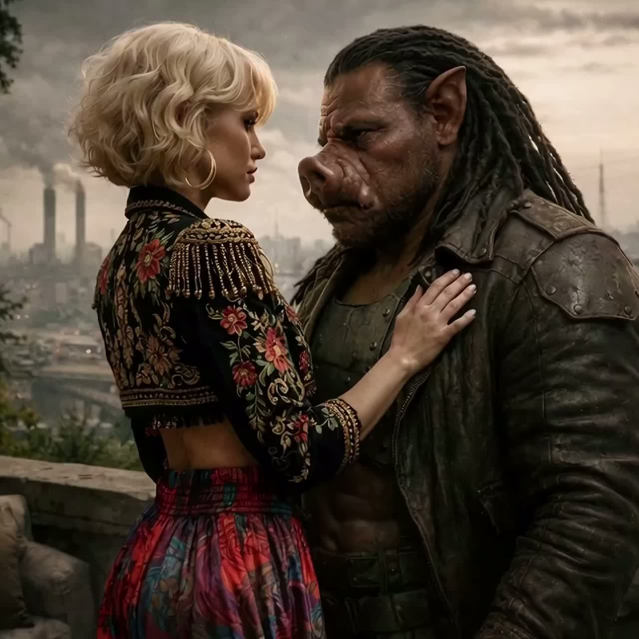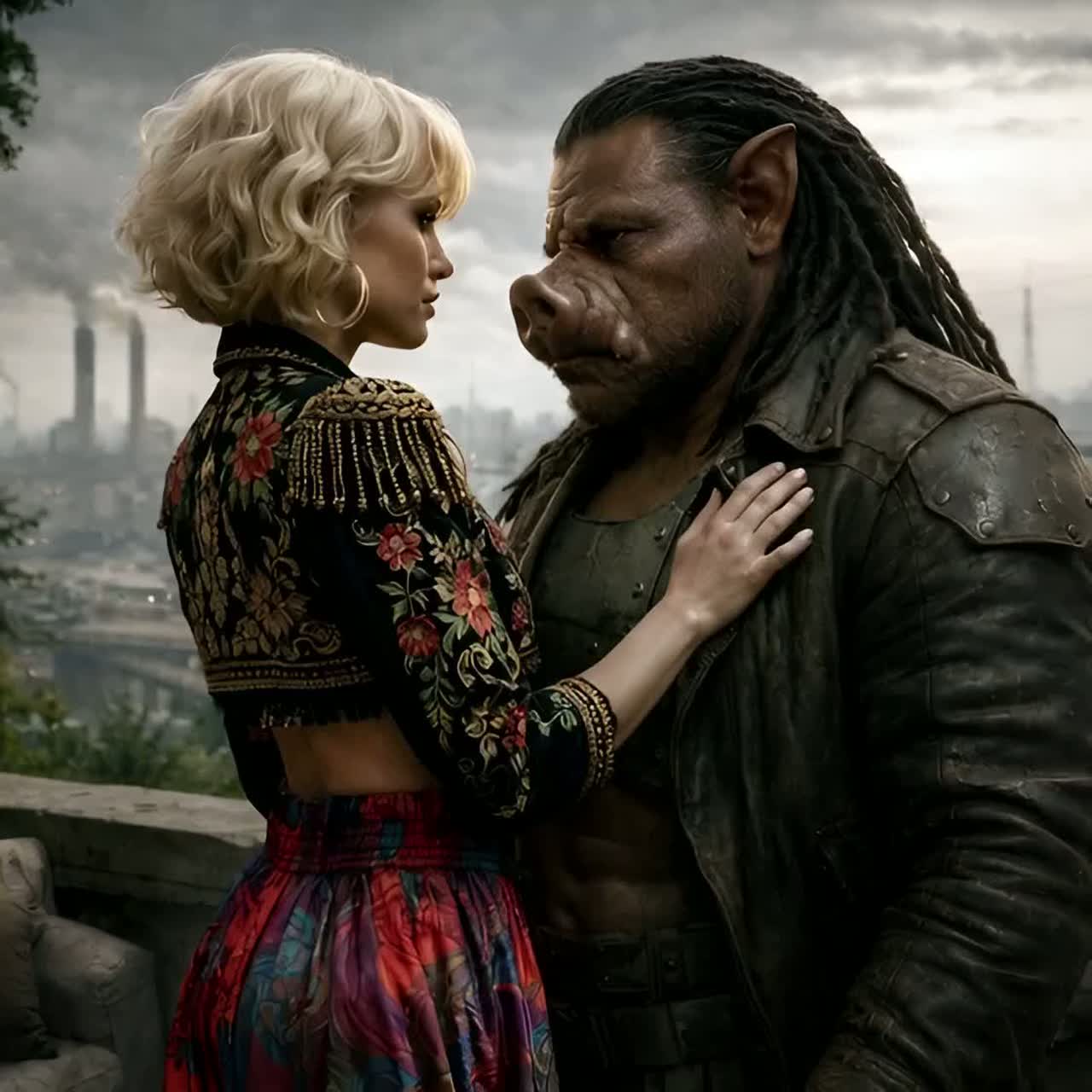 Situation: couple dancing defiantly in a dark street, "dangerous" neighbourhood