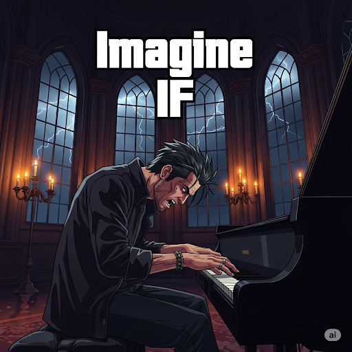 Create a dark, anthemic pop-rock/R&B fusion track titled 'Imagine If' by Greyson Slayer, Tempo: 82 BPM, key: E minor, Combine Imagine Dragons–style arena drums, cinematic guitar riffs, and atmospheric synth pads with Greyson’s smooth R&B vocal tone, Verses are moody and low-register, the chorus explodes with chantable layered vocals and massive percussion, Add gospel-style background chants in the final chorus for impact, Vibe: a haunting stadium anthem, ‑Greyson Slayer