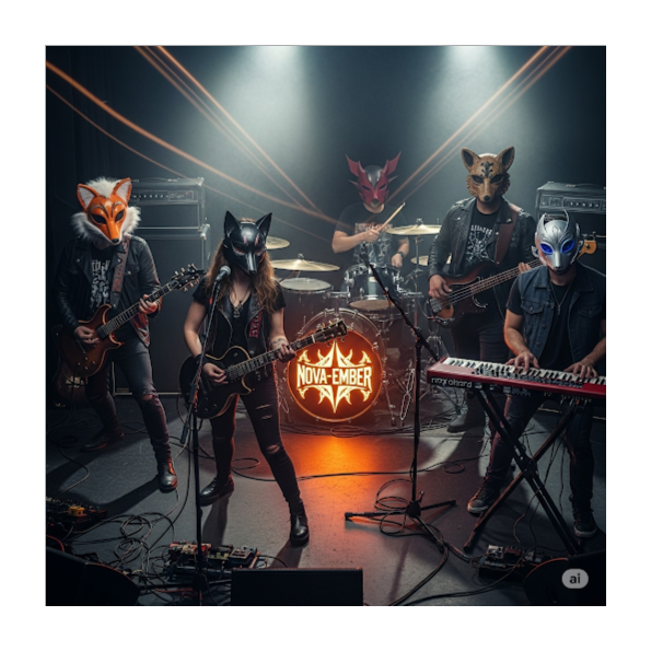 "(A lone guitar howls — raw, distorted, emotional, The solo starts clean and bluesy, then escalates to shredding notes that scream across the mix, As the guitar climbs, a low, ominous hum rises…)Create a cinematic metal/alt-rock track by Nova-Ember, Begin with a haunting, emotional guitar solo that transitions into heavy distortion, Irish accent vocals start as whisper-soft, melodic, and haunting, then build to emotional melodic lines and finally feral but harmonic guttural screams in the chorus, Drums evolve dynamically — soft and minimal in verses, full double-kick and crash-heavy in choruses, Include a mid-song breakdown with a second explosive guitar solo, Vibe: dark, theatrical, and emotional, ‑Nova-Ember