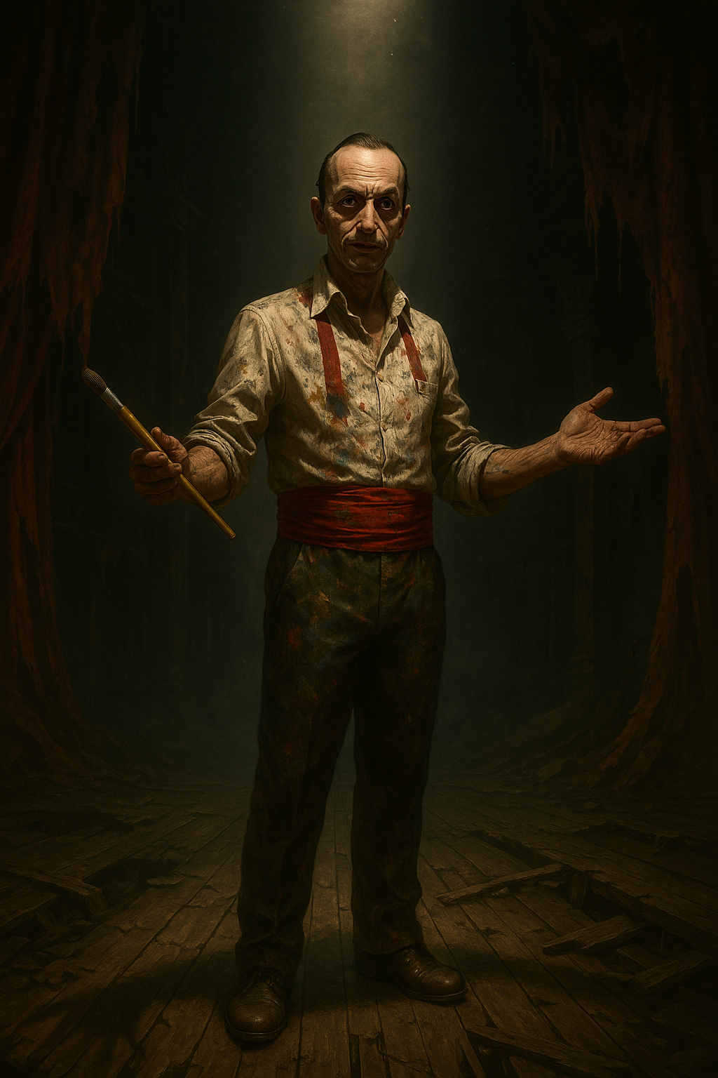 nu-metal fused with manic 1940s big-band theatrics; blaring brass, discordant swing rhythms, violently hammered piano, frantic woodwinds; sudden mood-swings between elegant gala and chaotic breakdown, Mood: