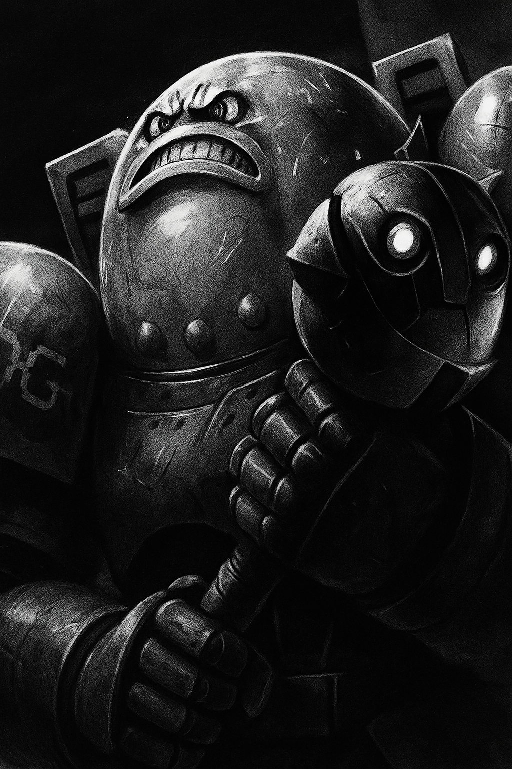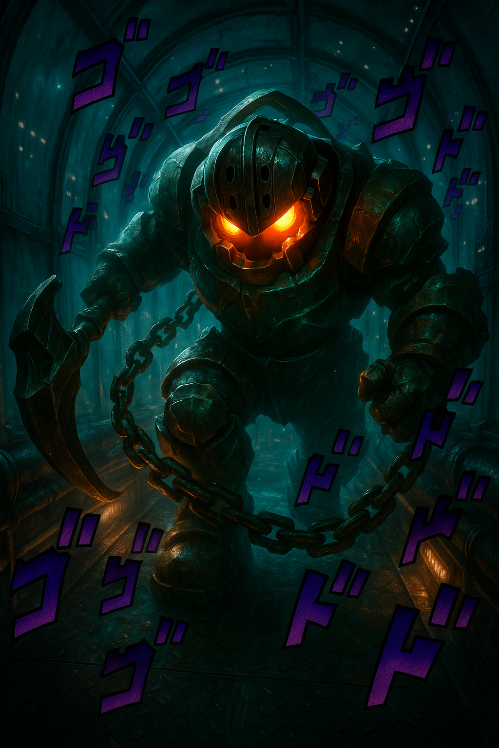 dark, tragic, unstoppable; deep-sea pressure and rusted rage; protective but monstrous; sorrowful heroism wrapped in steel, Vocals:
