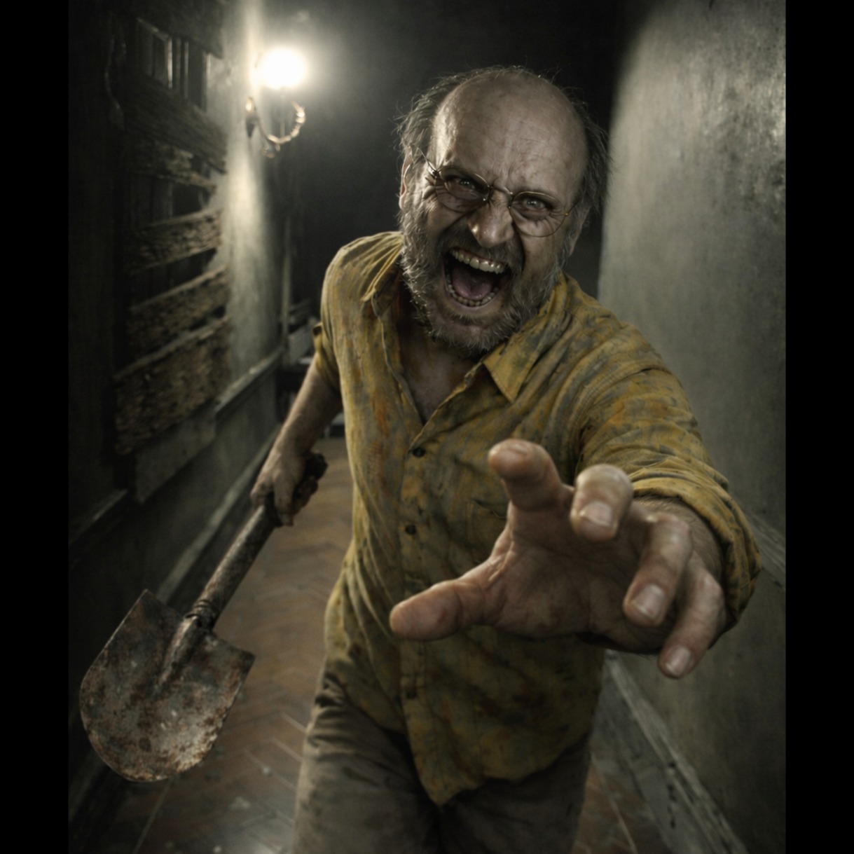 The track kicks off with warped carnival organ and low banjo licks, quickly joined by grinding nu-metal guitars and a swampy, distorted bass, Drums hit with a muddy, stomping groove, pushed by rattling chain percussion and eerie slide guitar bends, Verses are thick with foggy ambience, unsettling samples, and twisted blues licks, while the deep male vocals—swathed in a sinister southern drawl—slink and cackle between taunts, Choruses erupt with sludge-heavy riffs, manic laughter rising above the cacophony, The bridge warps into theatrical villain mode, layering carnival sounds and frenzied guitar licks before dropping back into the stalking, taunting groove for a grotesque finish