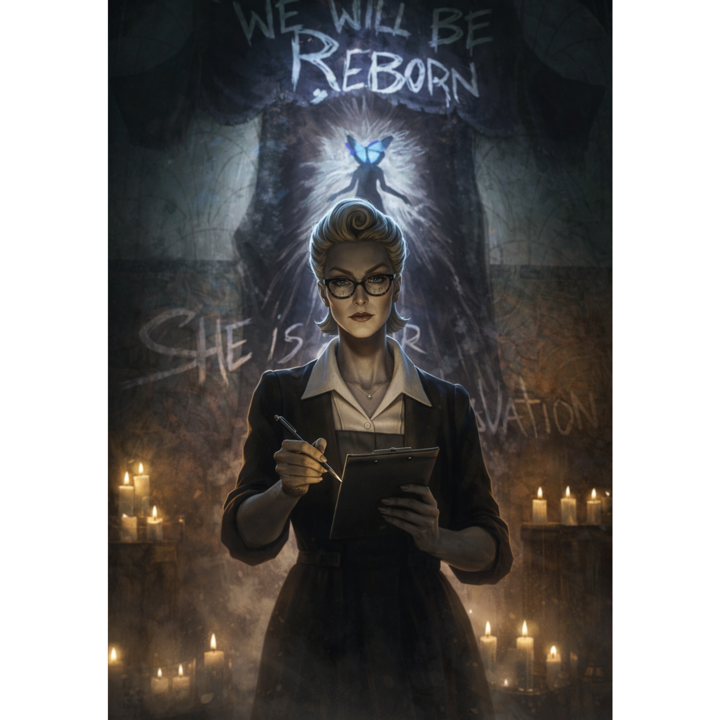 grandiose, seductive, unhinged; theatrical insanity, narcissistic brilliance, predatory glamour; constant tension between spotlight beauty and murderous mania, Vocals:
