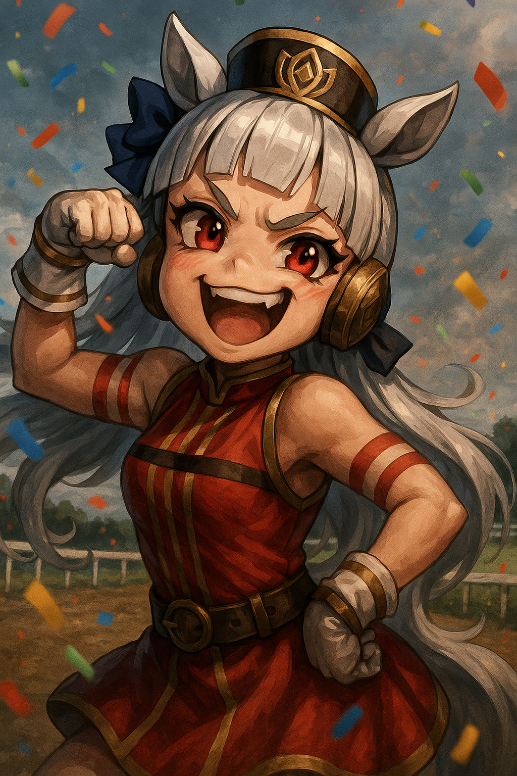 Style: hyper-energetic nu-metal fused with upbeat derby-ska; punchy distorted guitars chasing bright ska-horn stabs; chaotic rhythmic breaks; fast punky drums with syncopated reggae-offbeats; playful “race-day” brass, Mood: mischievous, unhinged, victorious; chaotic fun after a derby win; loud, confident, unstoppable energy, Vocals: all-female cast; GoldShip-style unfiltered charisma; shouted hype lines, cheeky spoken breaks, sudden melodic bursts; layered harmonies mimicking stadium chants (but all feminine); no male voices, Instrumentation: distorted guitars, slap-bass riffs, racing snares, festive trumpets/trombones, whistle hits, clattering derby bells, metallic impacts, crowd-like female chant layers used as percussion, Energy: explosive, bouncing, unpredictable; constantly switching between ska sprint, nu-metal stomp, and chaotic breakdowns