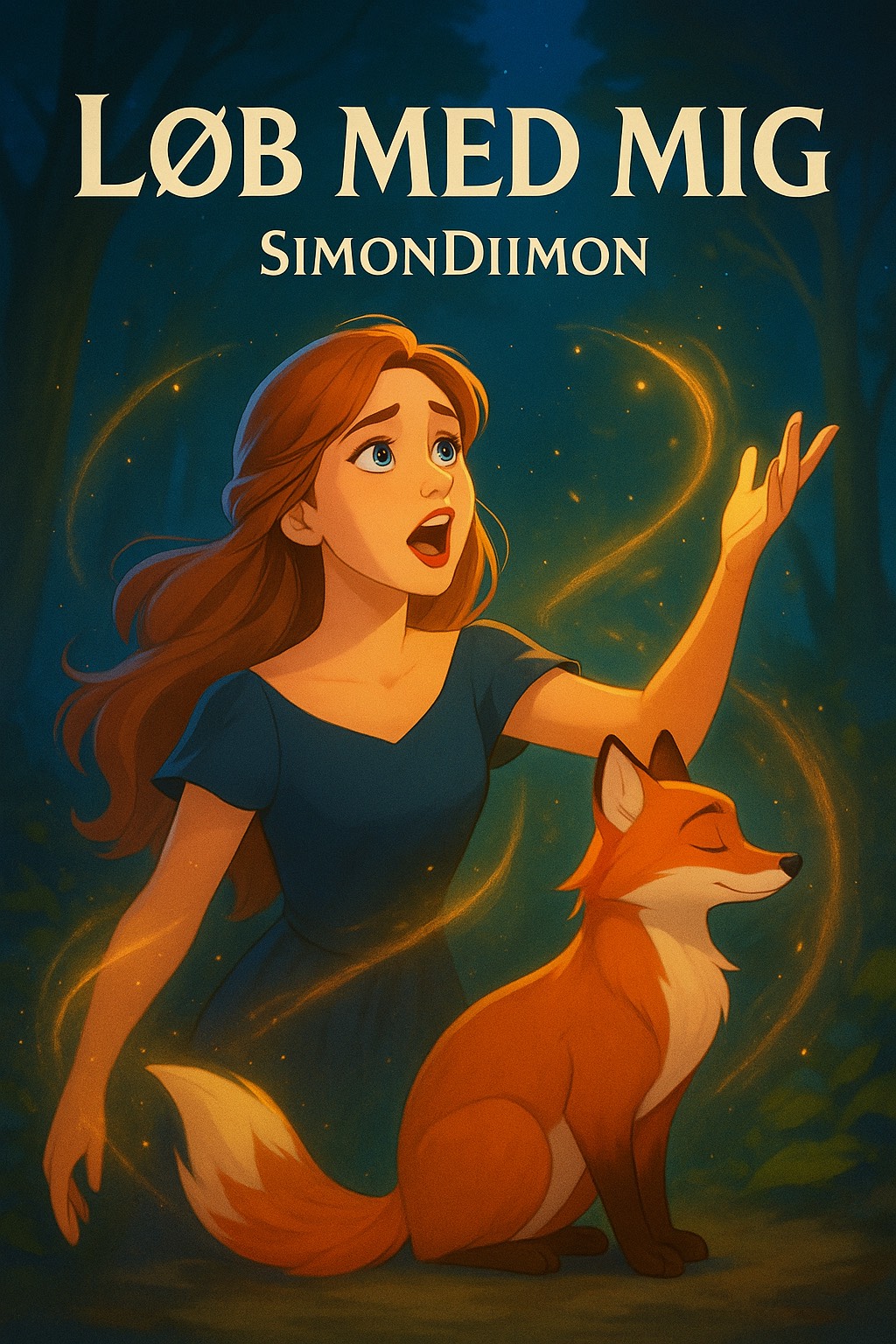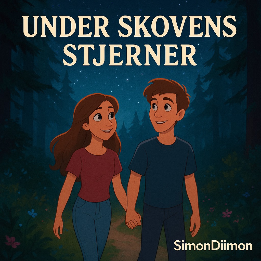 “A magical Disney-inspired duet song in Danish, sung by a male and a female voice, The music should feel dreamy, orchestral, and adventurous, with soft strings, gentle piano, and a touch of sparkling chimes, The lyrics are about two people walking hand in hand through a glowing forest under the stars, discovering love and magic together, ”