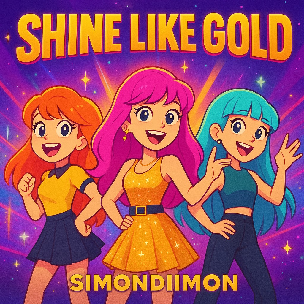 “Generate an upbeat, cinematic K-pop style song performed by a three-member girl group, The song should be in English and have a fun, energetic, and empowering vibe, like a high-energy movie soundtrack, Include catchy verses for each member, a strong pre-chorus, a memorable chorus sung together, and a dynamic bridge, The lyrics should celebrate friendship, confidence, empowerment, and shining bright like gold, Make the melody pop-dance, modern, and perfect for streaming on Suno, capturing the excitement, drama, and charisma of a girl group performance, ”