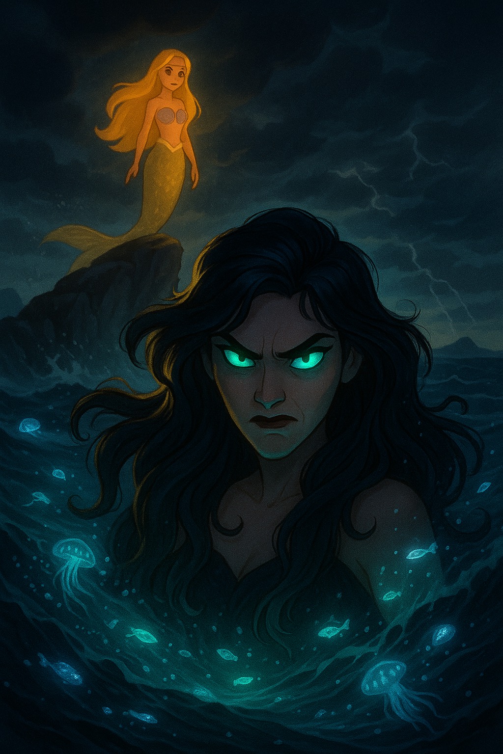 Dramatic Disney-style villain song with dark orchestration, magical oceanic atmosphere, and a powerful, theatrical female vocal, Inspired by Ursula from The Little Mermaid and Maleficent – epic, seductive, and menacing with a gothic fairytale vibe