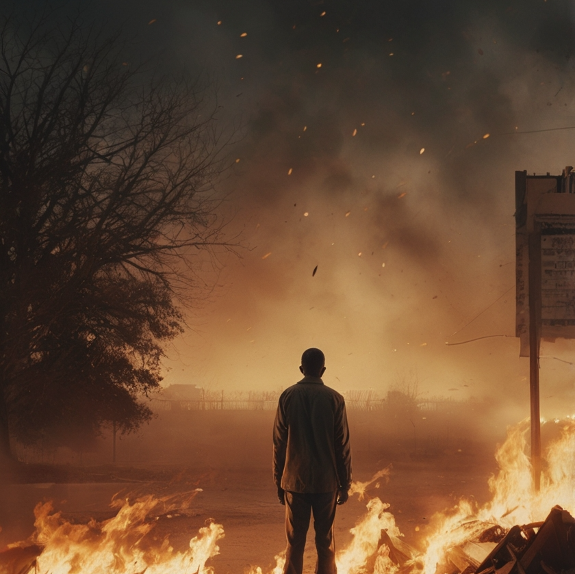 Dark emotional post-rap / spoken word with layered vocals, Male lead voice: low, steady, cold, with restrained intensity — like telling a story that cannot be softened, Female supporting voice: soft, ghostlike harmonies that bloom into a powerful choir in key emotional moments, Gospel choir swells appear as haunting echoes, not joyful, Rhythmic cadence with breath and pause, not monotone narration, Deep warm pads, low sub-bass pulse, spacious reverb, metallic textures, Punchy but slow drums (70–84 bpm), hollow snare, heartbeat kick, Chorus sections expand into lush synths and layered harmonies; verses stay minimal, tense, and close to the mic, Atmosphere: cinematic, sacred, wounded, human, Tone: powerful, dramatic, reverent but unsentimental