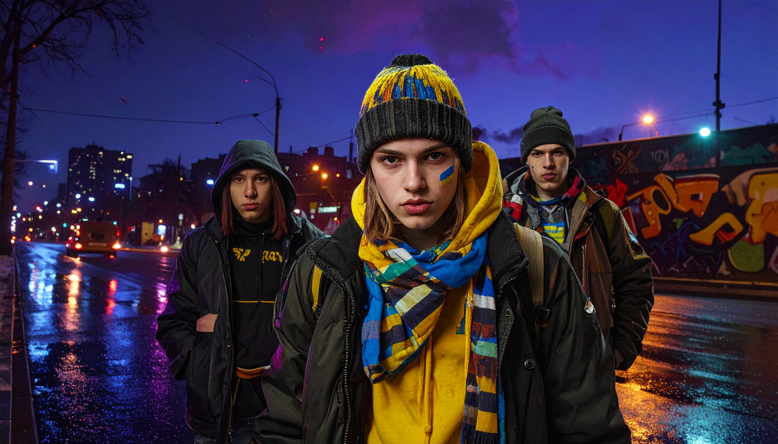 A dynamic, cinematic song blending genres for each verse, Start with downtempo electro-jazz — intimate, traveling feel, subtle train sounds, soft bass, brushed drums, Then move into dark synth-pop groove with rhythmic spoken-word delivery, female vocal: confident, sultry, mid–low range, slightly husky, Add bandura plucks and airy sopilka phrases for Ukrainian accent, layered with bright analog synth arpeggios and elastic bassline, Bridge grows tense with industrial echo, cold reverb, metallic percussion — reflecting lines “Kindness = weakness, ”