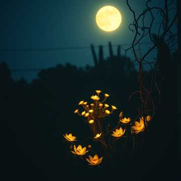 Blend intimacy with cosmic scale like a prayer carried by moonlight, Echoing reverb and layered harmonies evoke mythic tension between wildness and surrender, Add a luminous chorus of female harmonic voices softly layered in the midsection and swelling at the end like a celestial choir guiding the listener home