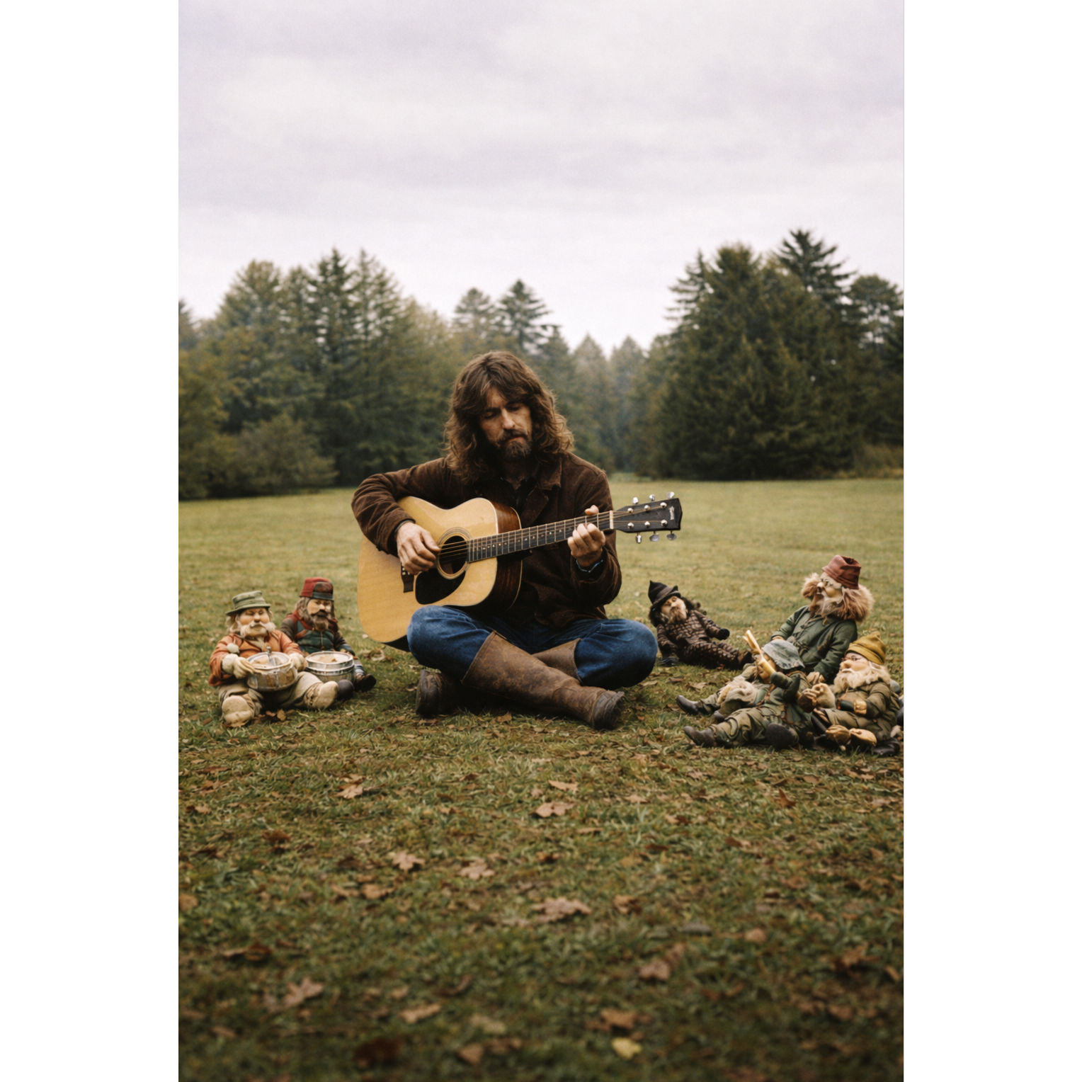 - Acoustic guitar strumming (loose, behind the beat)