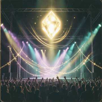 French urban pop and afro-pop performed live on stage, driving and rhythmic with a concert atmosphere, Tight live drum kit blended with afro percussions, warm electric bass, shimmering stage synths and a melodic lead line played by a live band, Dynamic crowd energy with applause swells, call-and-response moments and big chorus impact sung with harmonized backing vocals, Deep, powerful male lead vocal delivered with raw, expressive stage presence and slight rasp, adding improvisations and extended notes on key phrases, Medium-fast tempo with a dancing groove, uplifting and enchanting mood, capturing the feeling of an epic headline performance in a large venue