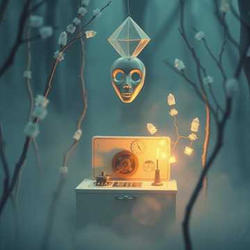 Mid 90s Nu Metal, percussive slap bass, heavy down tuned distorted guitars, groovy drums, tempo changes, orchestra, xylophone, creepy, spooky, music box, tribal drums, unconventional scales, frequent key changes, bouncy, choir, glass harminica