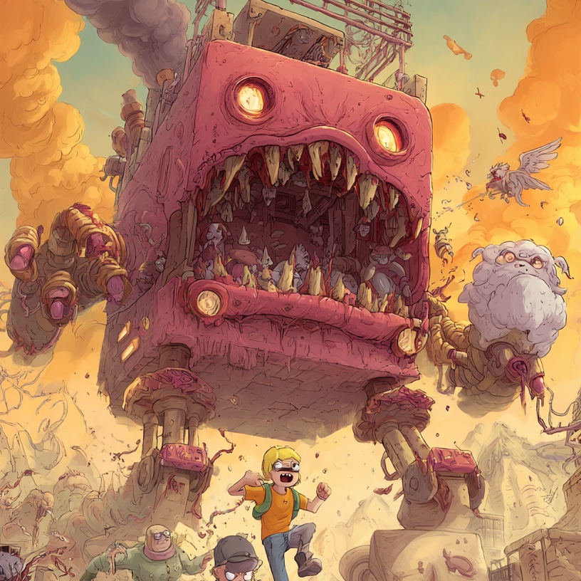 metalcore, rhythm-driven chaos, pounding drums, and a repetitive, grinding bass line, layers of distorted, industrial noise and eerie soundscapes