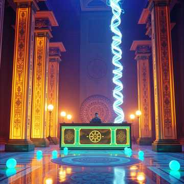 Explosive, uplifting, spiritual rave energy, vibe light in motion, resilience, life rising, Ancient holiness fused with futuristic club power, Rhythm: