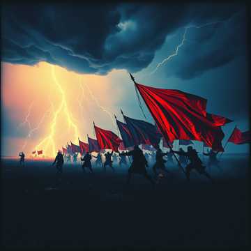 The thrash metal track launches with fierce, palm-muted guitar riffs and tight, aggressive double-kick drumming, Verses charge ahead with rapid-fire rhythm guitars and punchy bass, supporting raw, raspy male vocals, Intense breakdowns and blazing solos drive momentum before a final explosive finish