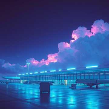 Produce a Deep House track with a smooth mid-tempo groove and cinematic airport ambiance, Focus on atmospheric textures, ambient pads, and warm basslines, Include background elements like faint pilot radio chatter, flight announcements, or intercom-style voice-overs—not lyrics, but subtle voice effects to enhance the nighttime departure mood, Create a feeling of waiting at the terminal before a late-night flight to an unknown cityn