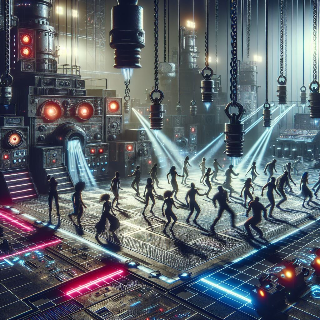 A dance track in Dolby Atmos, grooving at 130–150 BPM, powered by a punchy kick and deep, rolling bass foundation, Layered synth arpeggios sweep across the surround field, creating immersive movement, Airy, subtly echoed vocals float overhead, bringing space and dynamic lift to verses and choruses
