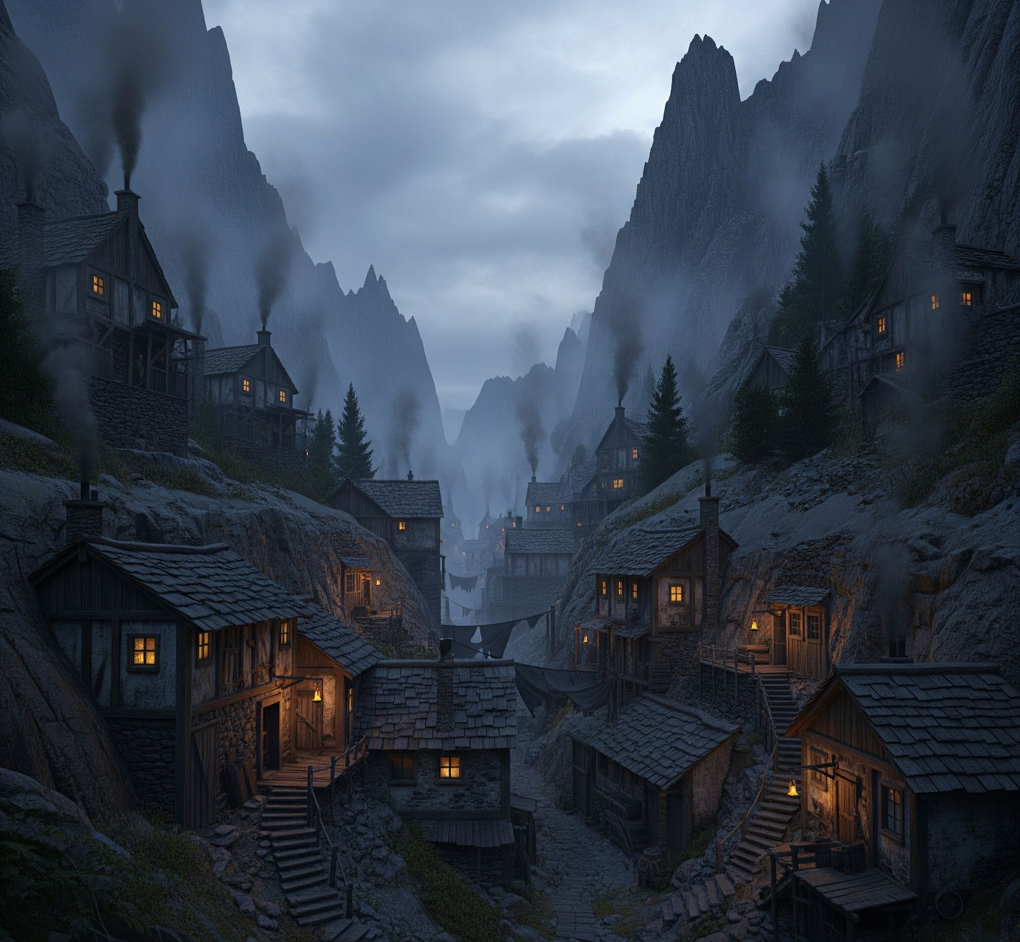 Calm Dark Fantasy Soundtrack, Ambient, Cinematic, Emotional, featuring solo violin and cello, [0:00] Intro: A soft, eerie forest ambiance, low cello drone, and a light woodblock rhythm that stops abruptly into silence, [0:45] A brief, quickening tempo with anxious strings for the run, ending with a single deep drum beat, [1:10] Fades into a gentle, cautious town theme with a distant lute melody, [1:45] The core: a warm, safe, and beautiful melody led by solo violin and cello over the soft crackle of a forge, Let this section breathe and develop, [3:15] Outro: Builds into a determined but quiet theme with a soft, steady drum and purposeful strings, then slowly fades to silence, please follow the time stamps it is important