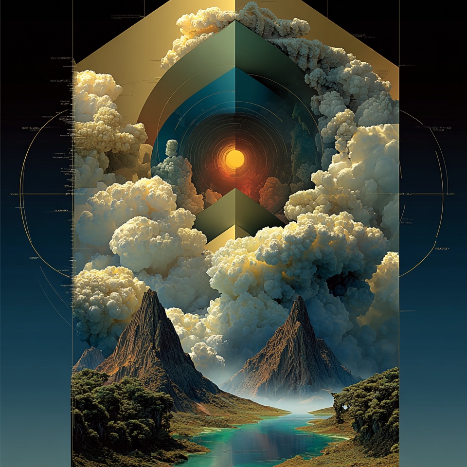 create a massive early 90s cinematic proto-jungle / drum and bass dubplate track with experimental dub reggae influence, atmospheric synths, nature sounds, long epic basslines that feel like mountains rising from the ocean, chopped lo-fi jamaican dub and dancehall vocals